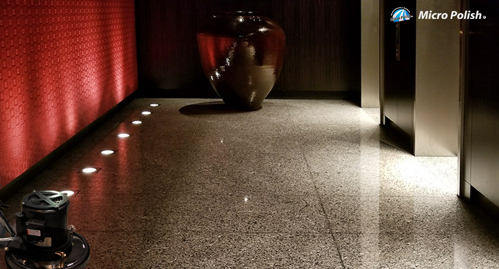 都内高級5つ星ホテルの大理石フロアーを、ストーンマスターポリッシャーで再研磨。